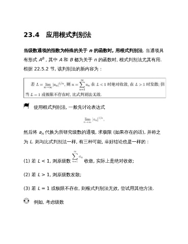 有形式 A , 其中 A 和 B 都为关于 n 的函数时, 根式判别法尤其有用.