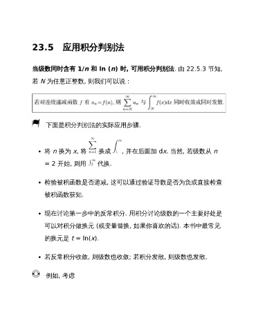 当级数同时含有 1/n 和 ln (n) 时, 可用积分判别法. 由 22.5.3 节知,