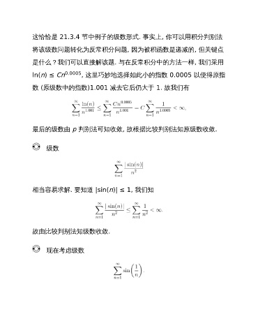 这恰恰是 21.3.4 节中例子的级数形式. 事实上, 你可以用积分判别法