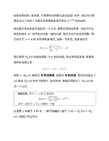 实际上, R (x) 被称为 N 阶误差项, 也称为 N 阶余项, 因为它就是从 f
