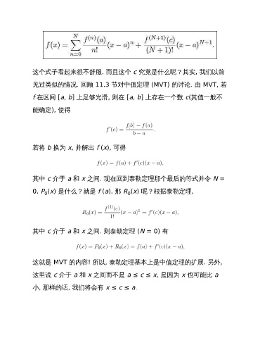 其中 c 介于 a 和 x 之间. 现在回到泰勒定理那个最后的等式并令 N =