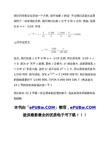 1/240 000. 换句话说, 当写 e -1/10 ≈ 5 249/6 000 时, 我们知道近似