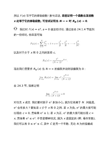 我们对 f (x) = e , a = 0 做这些讨论. 通过改动 24.1.4 节提到