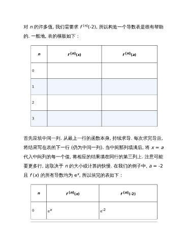 对 n 的许多值, 我们需要求 f (n) (-2), 所以构造一个导数表是很有帮助