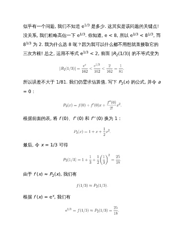 三次方根! 总之, 运用不等式 e 1/3 < 2, 前面 |R (1/3)| 的不等式变为