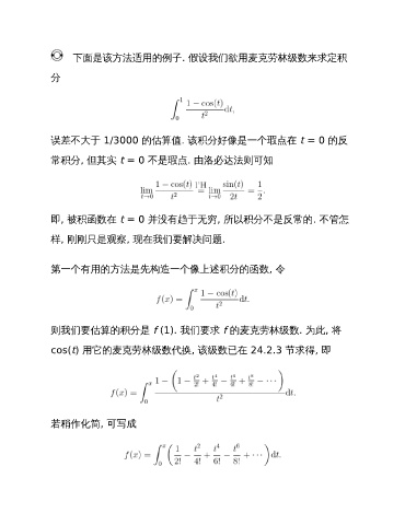 cos(t) 用它的麦克劳林级数代换, 该级数已在 24.2.3 节求得, 即