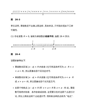 (1) 存在某数 R > 0, 被称为幂级数的收敛半径, 如图 26-4 所示.