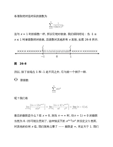 x ≤ 1 时幂级数绝对收敛, 且级数对其他所有 x 发散, 如图 26-8 所示.