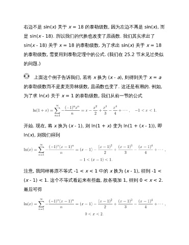 的泰勒级数, 需要用到泰勒定理中的公式. (我们在 25.2 节末见过类似