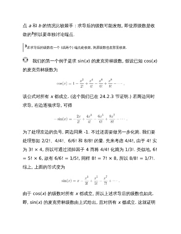 点 a 和 b 的情况比较棘手:求导后的级数可能发散, 即使原级数是收