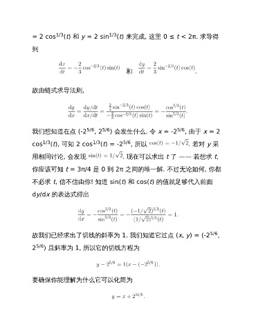 = 2 cos 1/3 (t) 和 y = 2 sin 1/3 (t) 来完成, 这里 0 ≤ t < 2π. 求导得
