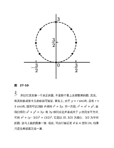可得 x + (y - 3/2) = (3/2) , 它是以 (0, 3/2) 为圆心、3/2 为半径