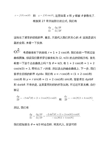 要求出切线的斜率 dy/dx. 我们有 x = r cos(θ) = (1 + 2 cos(θ))