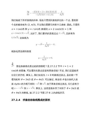 那这条曲线在原点处的切线呢?见 27.2.2 节中 r = 1 + 2