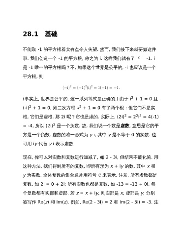 方是一个负数. 虚数的唯一形式为 y i, 其中 y 是不等于 0 的实数. 也
