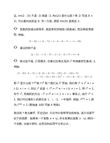 1, 我们可以看到 i 的幂次在 1、i、-1、-i 中循环. 例如, i 101 = i, 因