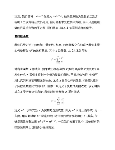 如何使形如 e 的数有意义, 其中 z 是复数. 从 24.2.3 节知