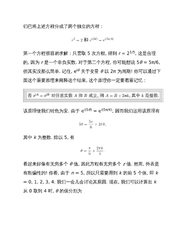 该原理使我们转危为安. 由于 e i(5θ) = e i(5π/6) , 因而我们运用该原理有