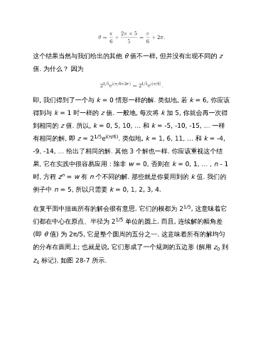 有相同的解, 即 z = 2 1/5 i(π/6) . 类似地, k = 1, 6, 11, … 和 k = -4,