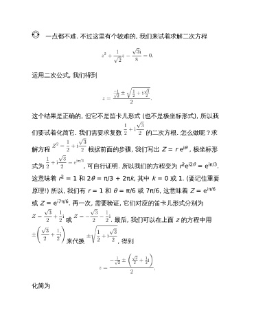 原理!) 所以, 我们有 r = 1 和 θ = π/6 或 7π/6, 这意味着 Z = e iπ/6