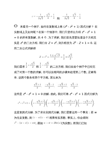 来看另一个例子. 如何在复数域上将 (z - z + 1) 因式分解? 在