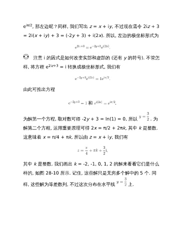 样, 将方程 e 2iz+3 = i 转换成极坐标形式, 我们有