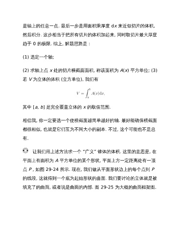 是轴上的任意一点. 最后一步是用面积乘厚度 dx 来近似切片的体积,