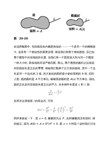 上图, 底的面积是 A 平方单位, 横截面的面积是 A(x) 平方单位. 因此,