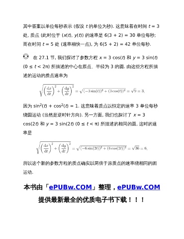 所以这个新的参数方程的质点确实以两倍于原质点的速率绕相同的圆