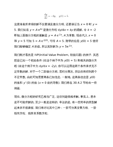 和 y = 5 可知 5 = A e -2(0) , 可得 A = 5. 附带的信息 y(0) = 5 使得