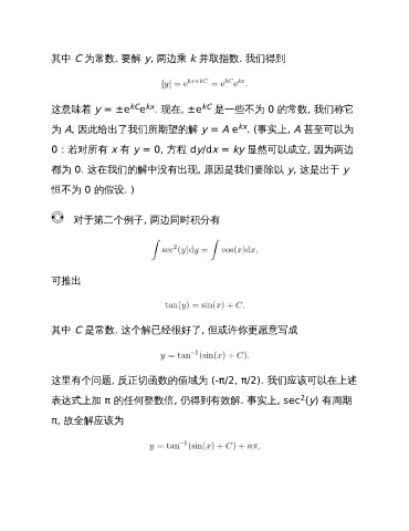 这意味着 y = ±e e . 现在, ±e 是一些不为 0 的常数, 我们称它