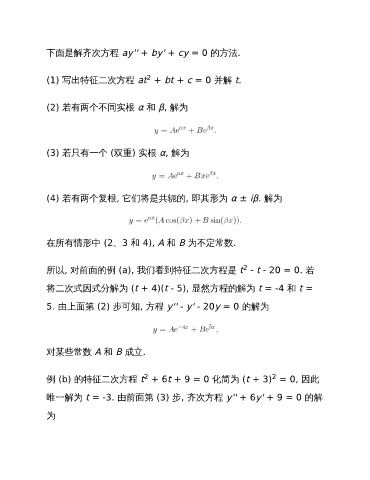 下面是解齐次方程 ay'' + by' + cy = 0 的方法.