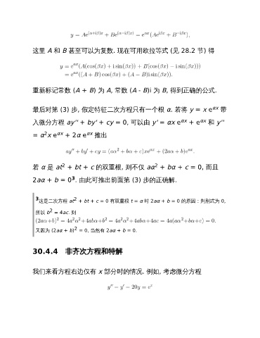 入微分方程 ay'' + by' + cy = 0, 可以由 y' = αx e + e 和 y''