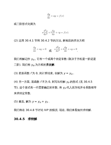(4) 另一方面, 若函数 f 不为 0, 则写出特解 y 的形式 (见 30.4.5
