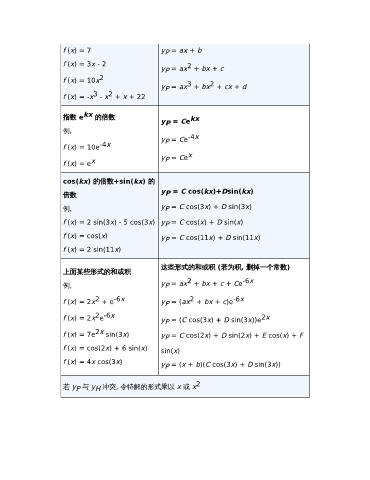 f (x) = 7e 2x sin(3x) y = C cos(2x) + D sin(2x) + E cos(x) + F