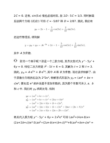 后这两个方程 (试试!) 可得 C = -5/87 和 D = 2/87. 因此, 我们有