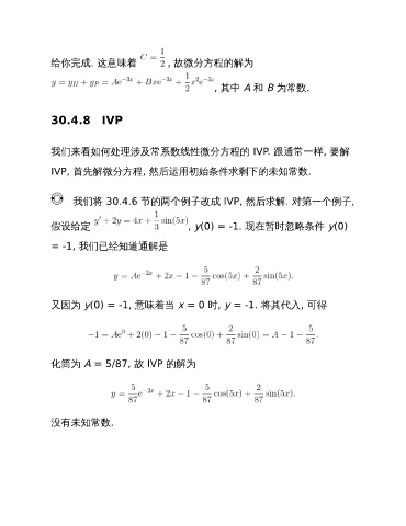 化简为 A = 5/87, 故 IVP 的解为