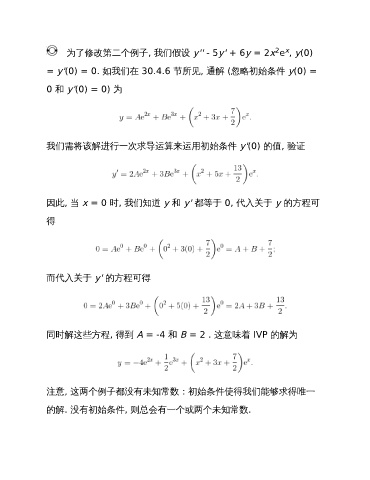 = y'(0) = 0. 如我们在 30.4.6 节所见, 通解 (忽略初始条件 y(0) =