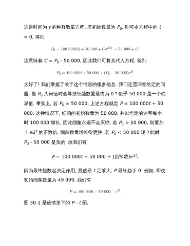 上 e2 的正数倍, 细菌数量增长得更快. 若 P < 50 000 呢?此时