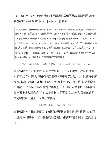 变窄, 以便 |f (x) - L| 和 |g (x) - M| 都小于 ε/2, 而不是 ε. 这是没有