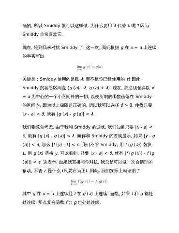 δ, 就有 |g (x) - g (a)| < λ. 而你和 Smiddy 的游戏显示, 如果 |y - g