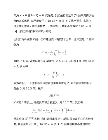 反常积分 发散, 我们必须非常小心提到. 最初证明它的发散性