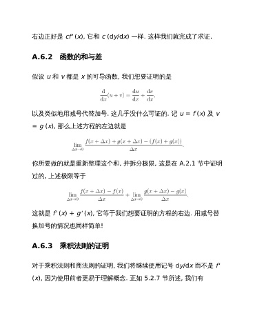 对于乘积法则和商法则的证明, 我们将继续使用记号 dy/dx 而不是 f'