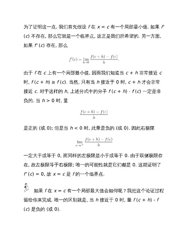 时, f (c + h) ≥ f (c). 当然, 只有当 h 接近于 0 时, c + h 才会非常