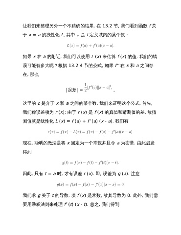 如果 x 在 a 的附近, 我们可以使用 L (x) 来估算 f (x) 的值. 我们的错