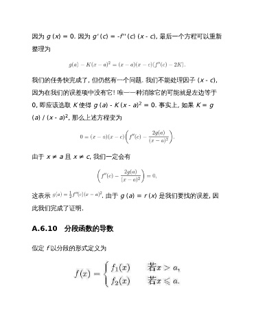 这表示 . 由于 g (a) = r (x) 是我们要找的误差, 因