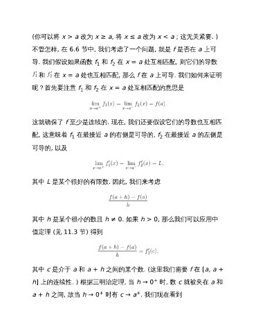 和 在 x = a 处也互相匹配, 那么 f 在 a 上可导. 我们如何来证明