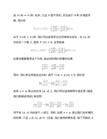 由于 h (A) = h (B), 我们可以使用罗尔定理来推出结论:在 (a, b)
