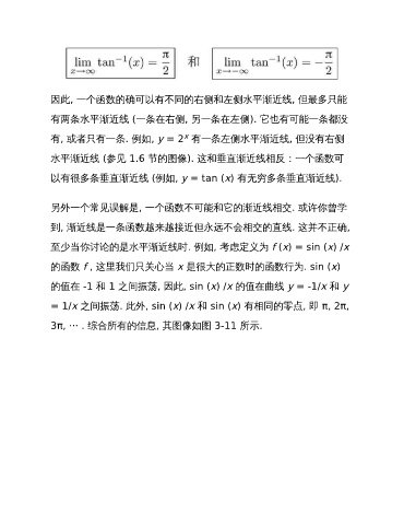因此, 一个函数的确可以有不同的右侧和左侧水平渐近线, 但最多只能