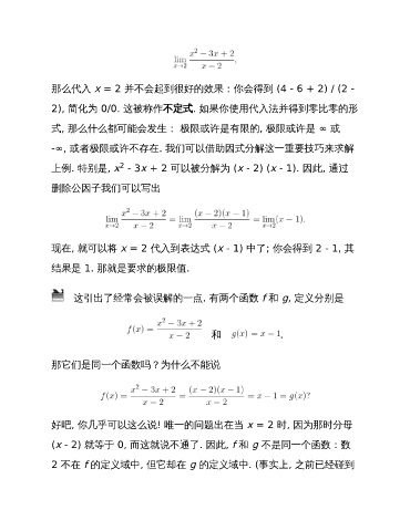 (x - 2) 就等于 0, 而这就说不通了. 因此, f 和 g 不是同一个函数:数
